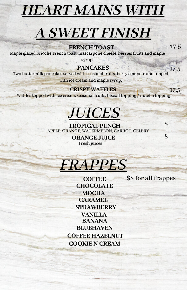 - Sweet Delights: Satisfy your cravings with French Toast or Crispy Waffles, both rich in goodness and taste.